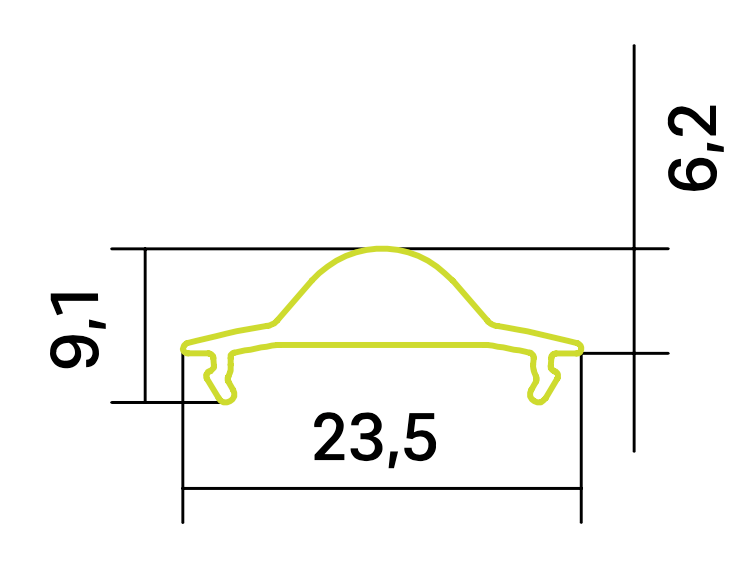 - Abmessungen (bxh): 23,5 x 9,1 x 2000
